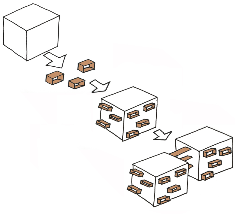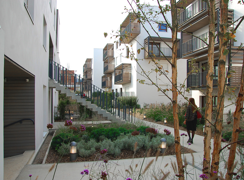 Després d’un procés de concertació i consulta amb els serveis de l’Ajuntament i amb els agents socials i els habitants, hem proposat un espai públic amb una àrea de jocs per a infants i un hort urbà articulat al voltant d’un carrer per a vianants est/oest i a un passatge nord/sud. Aquesta intervenció estructurant a escala urbana i humana recrea al nord una connexió amb el municipi limítrof de Kremlin-Bicêtre i connecta la proposta amb els barris de l’oest d’Ivry-sur-Seine. En definitiva, el dispositiu urbà que revaloritza la proposta és l’espai públic, que funciona en aquest projecte com a intercanviador i element de relació fonamental entre els diferents edificis.