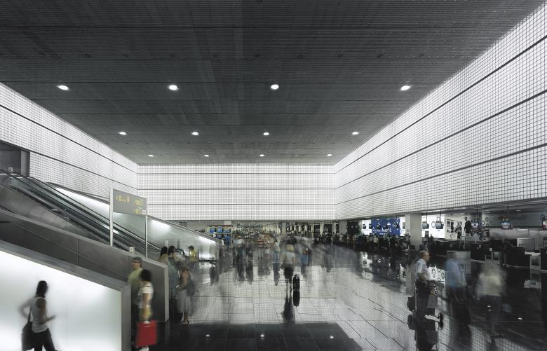 El proyecto plantea una fachada neutra para no crear mimetismos con las fachadas actuales. Por eso se propone una fachada de hormigon blanco, que se alinea con las fachadas de las terminales vecinas.