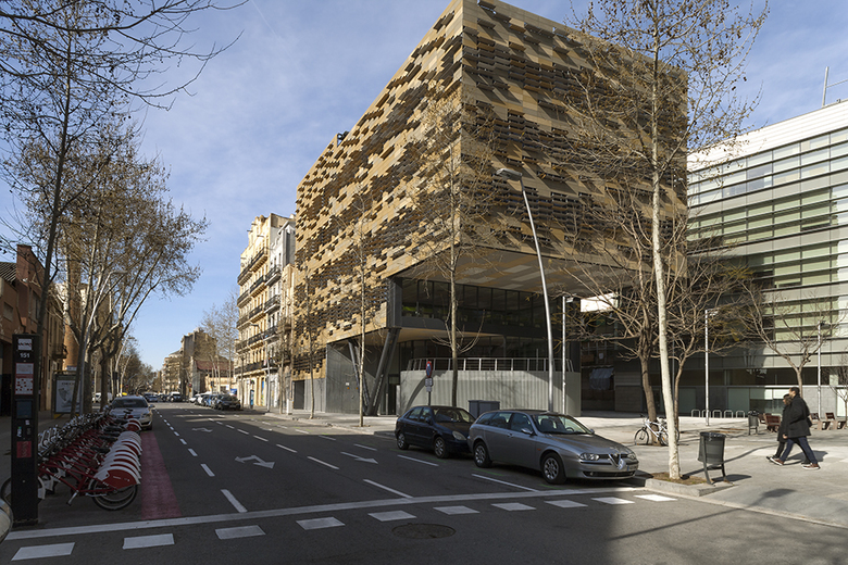 La presència de l’edifici pretén enllaçar, encara que no de manera figurativa, amb el front edificat existent proposant, de manera abstracta, una continuïtat en la textura de la pell de la ciutat tradicional.