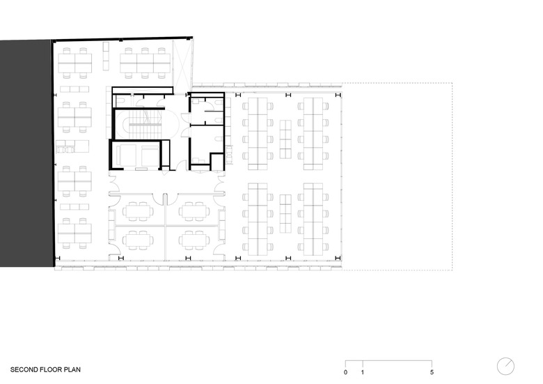 En una aproximació al lloc el projecte pretén activar el centre d’illa, vinculant-lo a l’espai lliure del carrer i propiciant el pas a través del edifici, per tal de convertir l’espai públic existent en un lloc de trobada i estada.