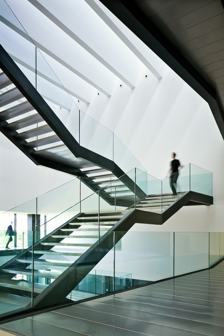 Aquest nucli es compon d'un ampli vestíbul en triple espai que integra escales obertes i ascensors.