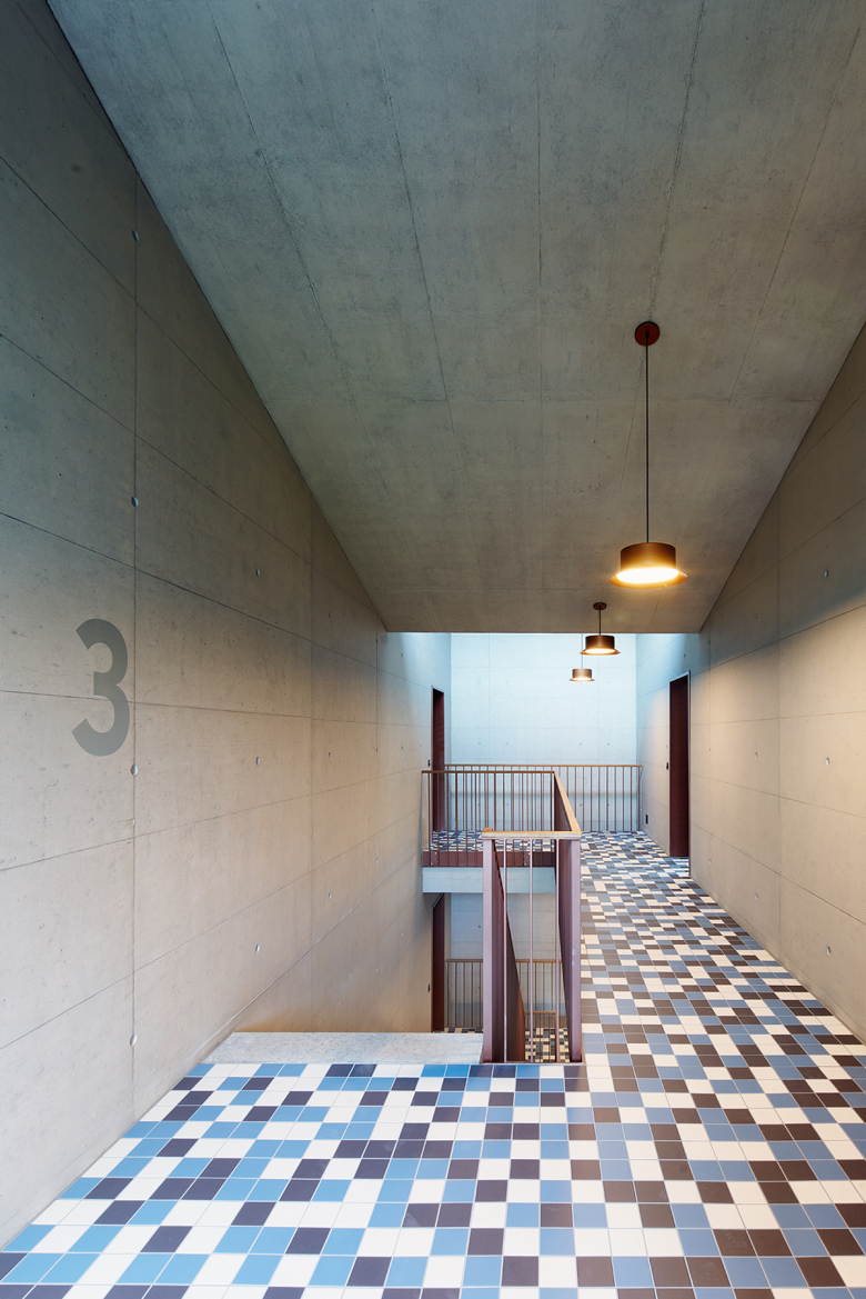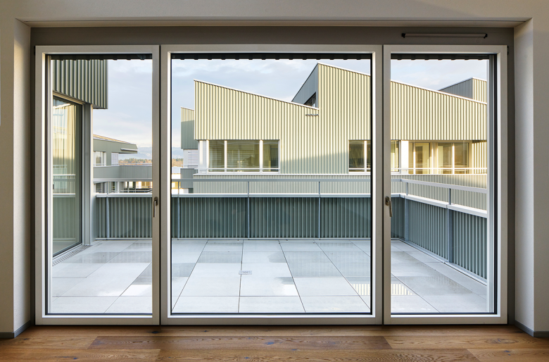 Die neuen Wohnbauten erinnern an die industrielle Geschichte St. Erhards, indem sie sich formal und konstruktiv auf die bestehenden Mostereigebäude beziehen. An Fassade wie im Innenraum werden vorgefundene Materialien neu interpretiert und eingesetzt und so der industrielle Charme bewahrt. Die charakteristischen Sheddächer lehnen sich an das Bild der ehemaligen Industriehallen an. Ebenso zeichnen sich die speziellen Attikawohnungen aus, die durch die Überhöhe und die zusätzliche Belichtung eine loftähnliche Ambiance erhalten. Die Bauten sind mit einem filigranen Kleid aus einer differenzierten Blechverkleidung umhüllt. Die feinen Farbnuancen und Schattierungen bewirken einen feingliedrigen und eleganten Ausdruck. Ziel ist es, die industrielle Geschichte des Ortes mit dem geplanten Projekt weiterleben zu lassen.