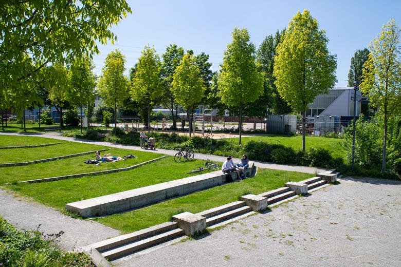 Über Jahrhunderte hinweg ragte die Festungsinsel in leicht erhöhter Lage über die Marschlandschaft. Wir inszenieren diese subtile topographische Besonderheit, indem wir sie als Lichtung inmitten eines Baumrahmens akzentuieren und herausarbeiten. So geben wir dem ehemaligen Schloss einen würdigen Rahmen und betonen die historische Bedeutung des Ortes. Gleichzeitig entsteht unter dem Baumdach ein Raum für unterschiedliche Aufenthaltsbereiche. Baumrahmen und Lichtung unterstützen die im Funktionsplan angelegte sternförmige Form des Parks. Zusammen mit den Neubauten, die »Bastionen« an den Eckpunkten bilden, wird so auf die ehemalige Zitadelle Bezug genommen. Als zeitgenössisch gestaltete neue Schicht lässt unser robustes Konzept weitere Entwicklungen zu und hat die Kraft, vorgefundene historische Relikte, wie Bodenbeläge oder Mauerelemente, wie selbstverständlich zu integrieren.
