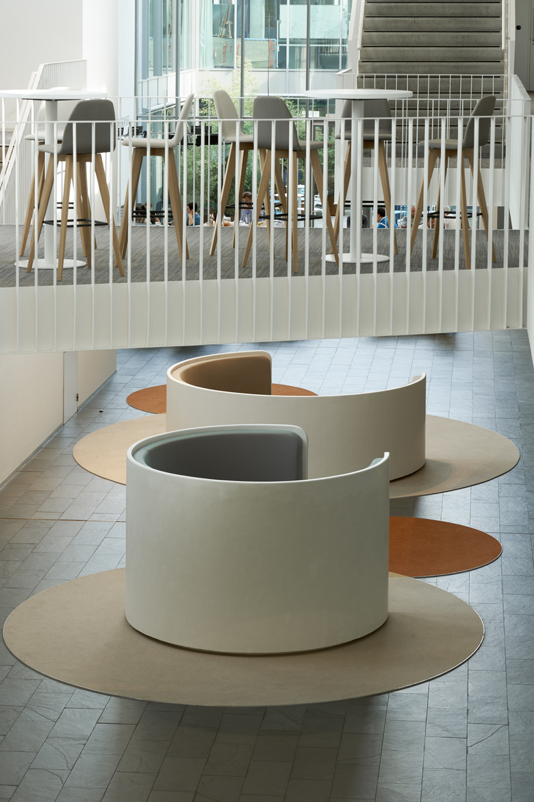 Uitsnijdingen en getrapte patio's brengen daglicht tot diep in het omvangrijke volume. De patio's hebben elk een eigen karakter. Het zijn de herkenbare ankerpunten waarrond de verschillende afdelingen van het bedrijf zich kunnen clusteren en organiseren. De opstelling zorgt voor een uitermate flexibele kantooromgeving. Wanneer afdelingen of diensten groeien of krimpen, kunnen ze zich eenvoudig hergroeperen rond hun epicentra.