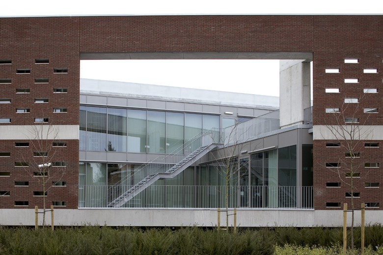 Het gebouw is een bescheiden aanwezigheid die als bemiddelaar optreedt in de veelheid aan schalen. De geste van de muur brengt opnieuw de juiste verhoudingen aan in de moeilijke stedenbouwkundige context.