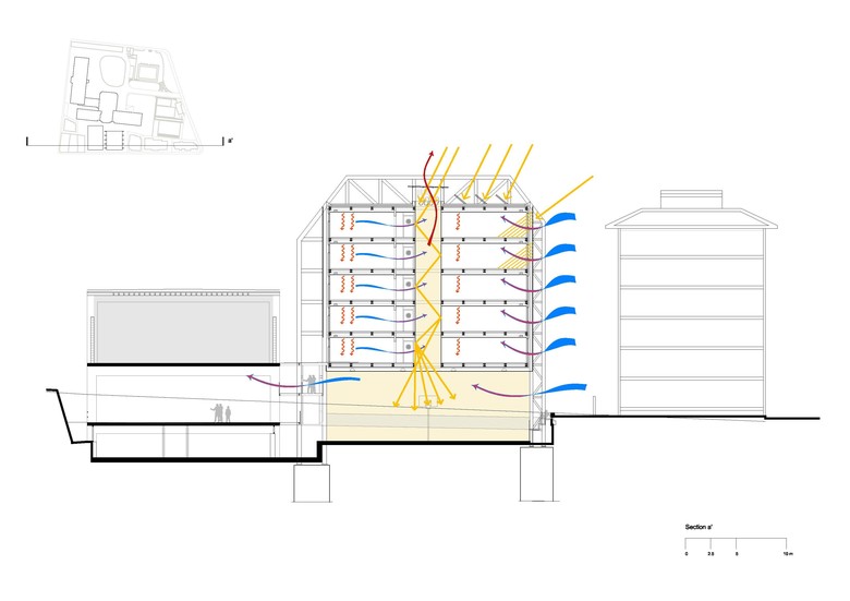 Tot el projecte s’ha treballat per aconseguir el mínim consum de climatització i mínim consum de renovació del aire interior, la vegetació juga un paper important en la qualitat del aire i coopera amb la maquinaria necessària per reduir la contaminació. S’ha optat per sistemes radiants de climatització com a solució que proporciona un major confort i transferència tèrmica.