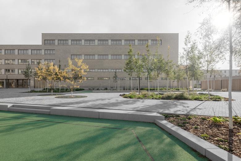 Die Freiflächen werden in die drei Bereiche gegliedert: Schulfreiflächen, Sportanlagen und öffentliches "Grün". Durch die gestalterische Setzung von "Grünen Kabinetten" als wiederkehrendes Motiv wird das Planungsgebiet zu einer eigenständigen und für das Quartier identitätsstiftenden Einheit zusammengeführt.