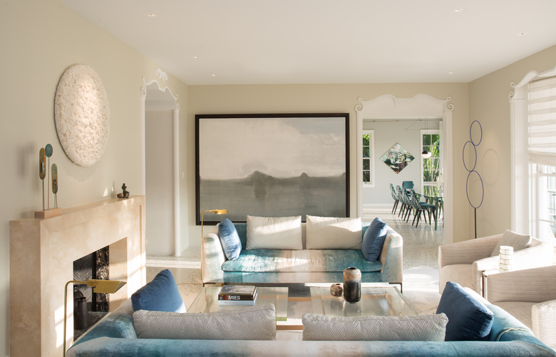 Our client, relocating from Coral Gables, Miami to a 12,000-square-foot house on Sunset Island, on the water, asked us to modernize the interior, while preserving its character, and conceive a decorative scheme that would inspire him to use every room. Built in 1939, by a Cuban sugar baron, the house called “Sweet Spot” is a charming architectural hybrid, combining Cuban Colonial and Hollywood Regency details.