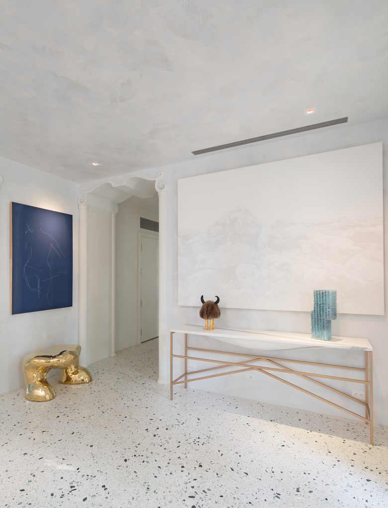 Our design reacts to the reflected light and lush landscape, and creates new moods in every room, responding to the view from the space, and juxtaposing art and design with a sculptural eye. The design includes artworks by Gerhard Richter, Marina Abramovitch, Pae White and Carlos Cruz Diez, among other notables.