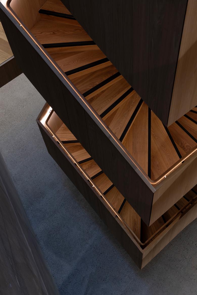 The project also has prosperous and well thought internal common areas which create a positive and worthy common framework for the residents. Inside, there is a robust material palette where the castin-place concrete walls create a modern but timeless expression together with a warm oak material used for the floors and ceilings and wrapping up the staircase.