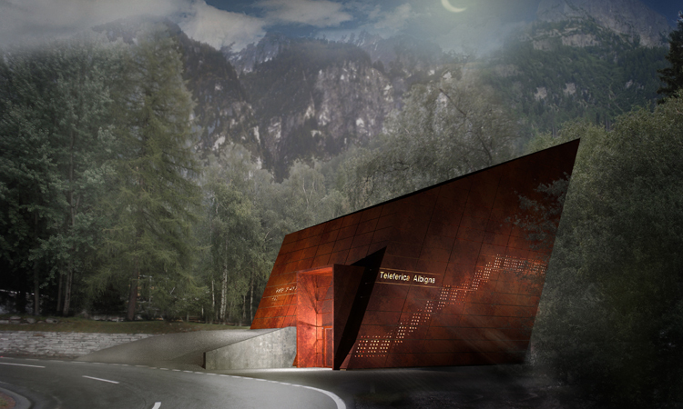 Die geplante Talstation ist ein Monolith, dessen Form und Geometrie ausschliesslich aus der Funktion der Seilbahn entstand. Durch die schlichte, auf das Wesentliche reduzierte, abstrakte Form bekommt das Gebäude eine ikonenhafte Ausstrahlung und wird somit zu einem Wiedererkennungsmerkmal. Es wird als öffentliches Gebäude wahrgenommen.