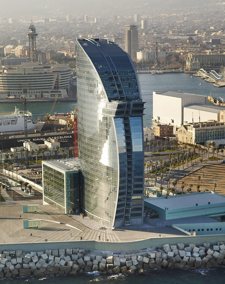 Este hotel de 5 estrellas está situado en el puerto de Barcelona, a orillas del mar. Tendrá 408 habitaciones, 67 suites, un bar panorámico situado en la azotea, piscinas interiores y exteriores y varios otros equipamientos agrupados debajo de una plataforma de terrazas. El edificio, engastado en el volumen del atrio, disfruta de grandes vistas sobre el mar y luz natural.