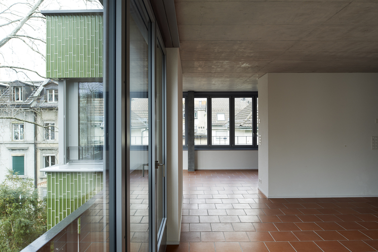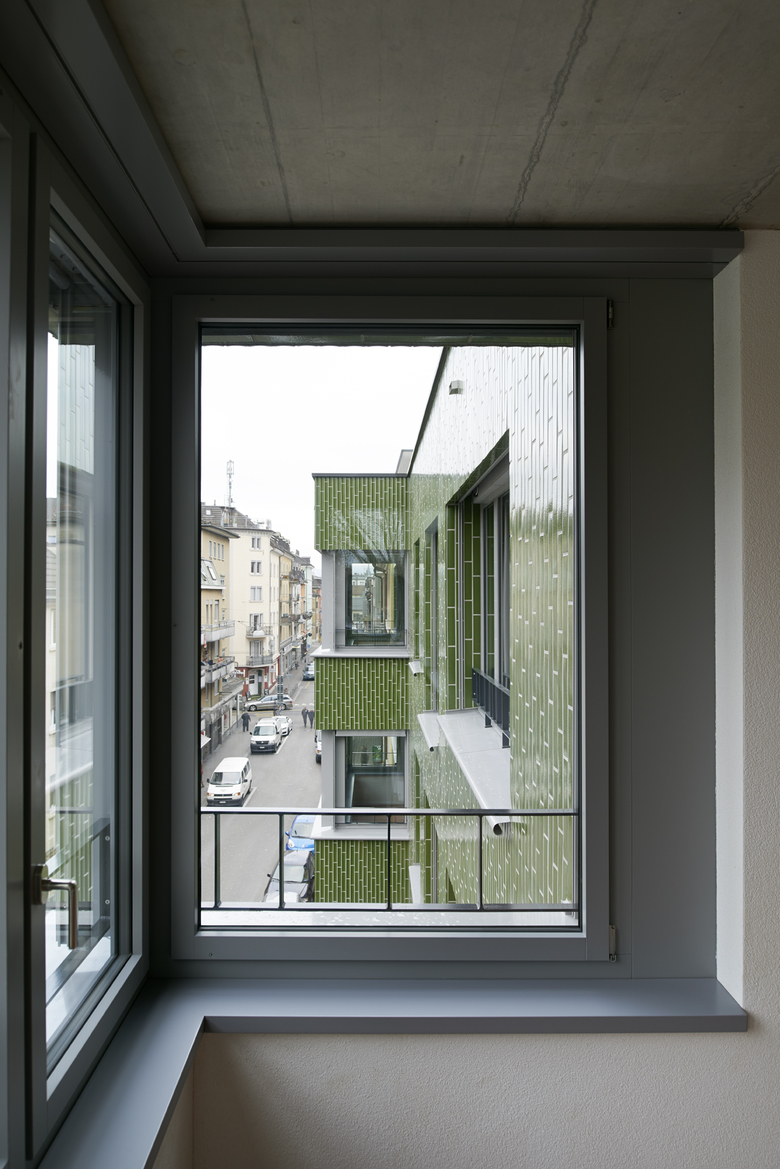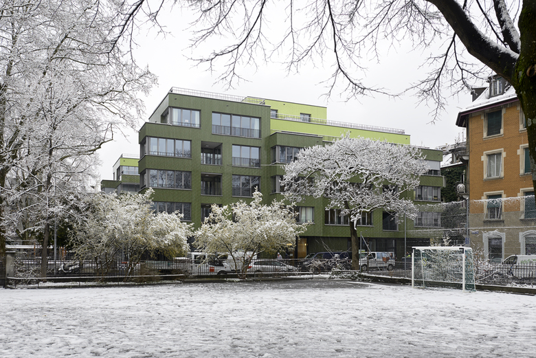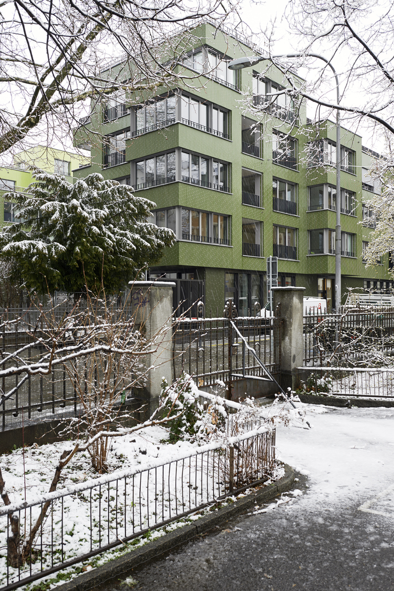 Die Evangelische Gesellschaft des Kantons Zürich, heute eine Stiftung, entstand in den 1830er Jahren in Zürich. Seit über 175 Jahren ist die Gesellschaft seelsorgerisch tätig und engagiert sich in sozialen Aufgabenbereichen. An der Dienerstrasse / Brauerstrasse, in zentraler Lage von Zürich, besitzt die Stiftung eine Parzelle, an der sie Ersatzneubauten realisiert. Der „Lukas-Hof“ ist ein multifunktionales Gebäude mit Wohnungen für verschiedene Nutzergruppen. Das Wohnungsangebot besteht aus Mietwohnungen mit verschiedenen Grössen. Von kleinen Appartements für berufstätige Singles bis zu Wohnungen für Familien bietet der Lukas-Hof ein breites Angebot an Wohnraum. Zusätzlich befinden sich im Erdgeschoss Räume für die Stiftung der Evangelischen Gesellschaft und Gewerberäume. Das Haus ist als Hofrandbebauung konzipiert und erfüllt die Vorgaben des Quartiererhaltungsplans. Das präzis gestaffelte Volumen fügt sich selbstverständlich mit einer kubischen Interpretation der Dachlandschaft in die Nachbarschaft ein. Der begrünte Innenhof ist ein Ort der Ruhe und wird als bewusster Kontrast zum städtischen und urbanen Umfeld verstanden. Der Hof bildet einen gemeinschaftlichen Rückzugsbereich für die Bewohner. Die Gestaltung und Materialisierung des Gebäudes ist eigenständig, um ein Image für diese spezielle Institution zu schaffen. Geprägt wird die Erscheinung durch die farbige Fassade aus keramischen Platten in verschiedenen Grüntönen. Grosse Fensteröffnungen und das präzis formulierte Gebäudevolumen erzeugen ein stimmiges Bild. Viele verschiedene Strukturen und Nutzungsanforderungen sind in einem Gebäude vereint. Die Wohnungen sind so organisiert, dass sie Bezug zum Innenhof und zum städtischen Umfeld aufnehmen. Durch die fliessenden Wohnräume erhalten die Wohnungen einen eigenständigen Charakter. Die Wohnungen sind gut belichtet und bieten durch die eingeschnittenen Loggien genügend Privatsphäre. Sie sind geprägt durch spannende Raumabfolgen. Ein weiteres Ziel ist, an einem urbanen Standort neben attraktivem Wohnraum und sozialen Nutzungen auch Impulse für ressourcenschonendes und nachhaltiges Wohnen in der Stadt Zürich zu geben.