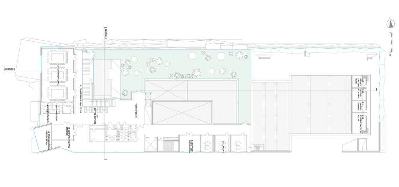 建物の1階は、ユーザーのさまざまなニーズを満たす「音楽のためのレベル」として設計されました。1階にあるすべての音楽室(リハーサル室、ドレッシングルーム、チェンバールーム、コンサートルーム)を近接して配置することで、それぞれの機能を明確に組み合わせ、コミュニケーションを取りやすくしています。また、特に完璧なオーガナイズが必要な大規模イベントの際には、このレイアウトにより、時間、スペース、ユーザーの管理を効率的に行うことができます。エクササイズルームは、お客様の好みに応じて、閲覧可能な状態にしたり、許可なくアクセスできないようにしたりすることができます。