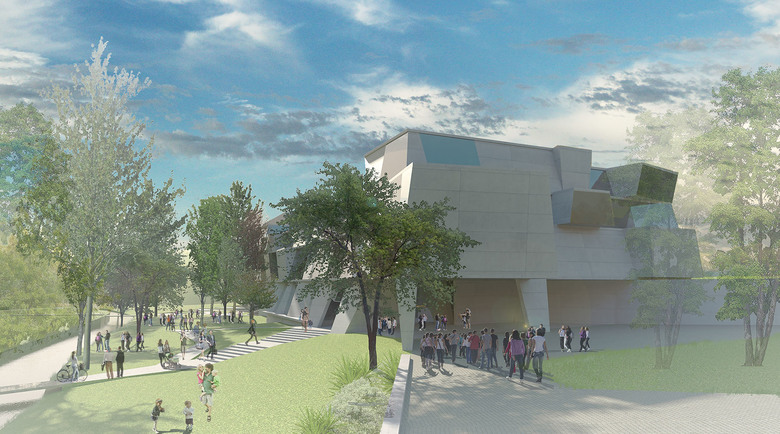 建物の各階からは無限に広がる公園の景色を眺めることができ、計画された道や地形の要素は建物へとつながり、地下の入り口は常に内部へと誘っています。壁や天井に設けられた多くの開口部とガラスのおかげで、内部にも一種のランドスケープが作られています。景色や見る人に向かって開かれ、魅力的で興味深く、親しみやすい建築を形成しています。切れ目のない空間の対話が生まれます。