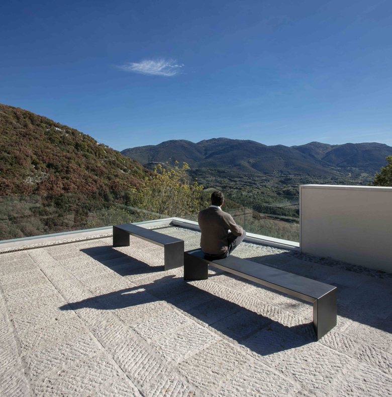 “E’ uno spazio essenziale come richiede il luogo, che abbiamo concepito per contemplare la valle e goderne l’atmosfera di silenzio e natura che il paesaggio trasmette. Un luogo dove isolarsi e ritrovare se stessi ” spiegano i progettisti.
