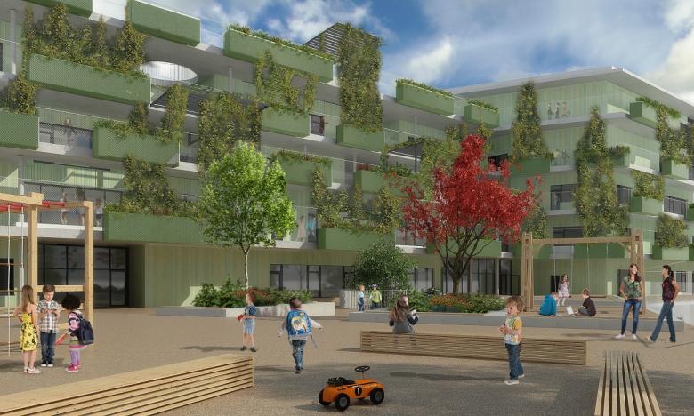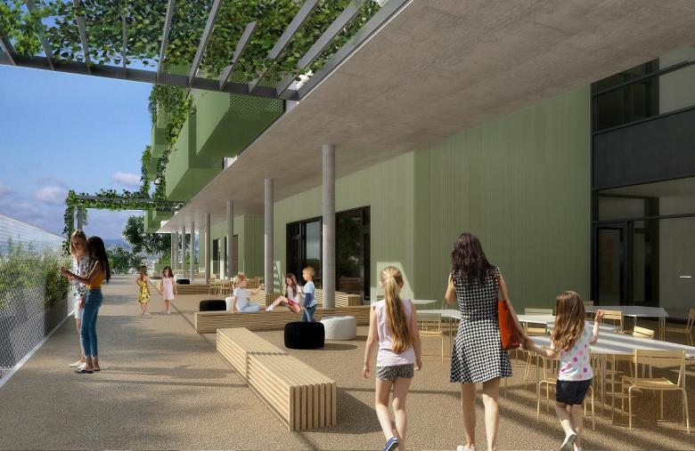 Der Campus umfasst einen Kindergarten mit 12 Gruppen, eine Ganztagesschule für Volks- und Mittelschule mit 29 Klassen, 4 berufsvorbereitende Klassen sowie eine Musikschule. Die Bildungsbereiche werden durch Kreativ-, Therapie- und Sportbereiche ergänzt. Zusätzlich stehen den Kindern Außenanlagen auf den ebenerdigen Freiflächen und den Dachgärten zur Verfügung. In den Freiluftklassen, ruhigen Lernbereichen sowie dem Spielbereich mit Motorikpfad und verschiedenen Spielgeräten können die Kinder lernen, spielen und sich bewegen. Für die Kleinsten gibt es eine Kleinkinder-Spielzone.