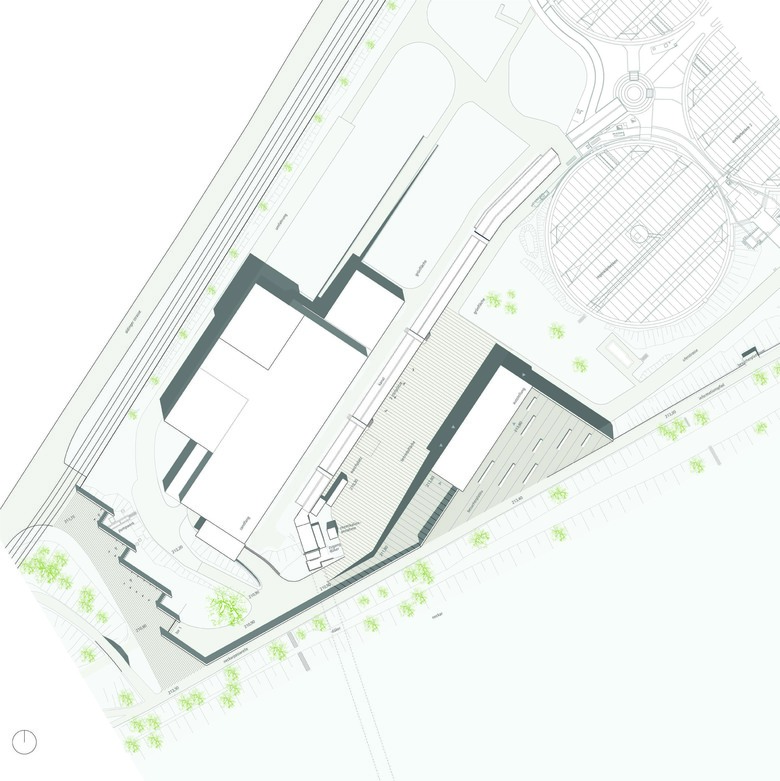 Entwickelt aus topographischem und städtebaulichem Kontext, wird der Neubau nicht nur zum signifikanten Objekt sondern auch zur Manifestierung des Raum- und Erschließungskonzepts.