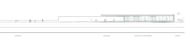 Vom Betriebsgelände entwickelt sich die Kante der Rampe über das Plateau und die nördliche Außenwand bis in das Flachdach des Besucherbereichs zu einer verbindenden und signifikanten Figur. Foyer, Ausstellungsfläche und Schulungsraum werden Teil eines linearen Raumkontinuums, welches durch frei platzierte Kerne gegliedert ist.