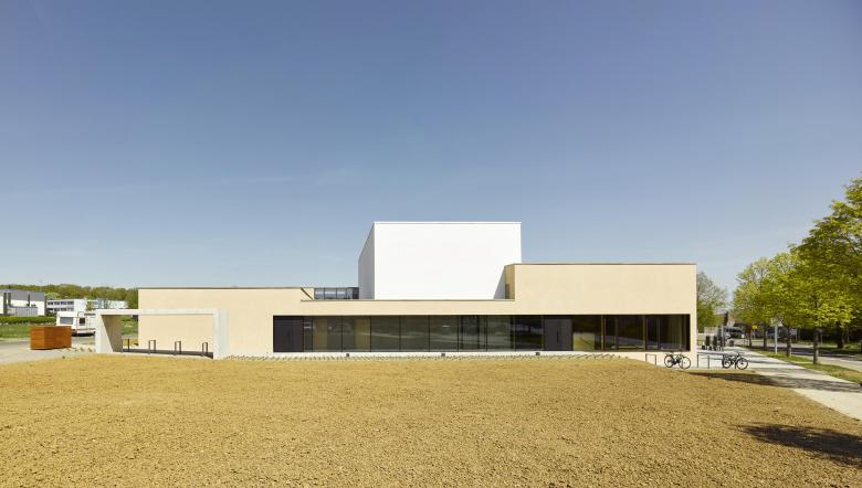 Die Gemeinde Pliezhausen mit 9.000 Einwohnern zeichnet sich durch das Engagement in der musikalischen Bildung von über 500 Akteuren aus. Um dem hohen Anspruch in Zukunft gerecht werden zu können, hat die Gemeinde in einen Neubau investiert. Die Lage am Ortsrand wurde als Chance genutzt, einen Solitär zu planen, der sich zwar mit seinem Haupteingang zur Ortsmitte orientiert, aber in der Schnittstelle zu einem Neubaugebiet auch als Drehscheibe funktioniert. Ein Vorplatz dient als Entree. Hier entsteht öffentlicher Raum. Die Musikschule wird architektonischer und kultureller Mittelpunkt.