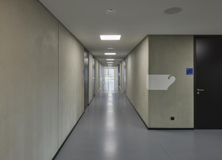 Das Lüftungskonzept mit Wärmerückgewinnung aus der Abluft sieht eine Doppelnutzung des baurechtlich erforderlichen mechanischen Luftwechsels in den Sanitärräumen vor, in dem die Zuluft über die Halle und die Erschließungszone in die Umkleiden strömt. Strahlungsheizkörper unter der Hallendecke und in den Umkleiden sorgen effektiv und reaktionsschnell für ein angenehmes Raumtemperaturniveau.