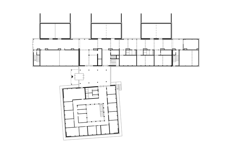 In den Obergeschossen werden Unterkunftszimmer zweibündig (analog zum Bestand) angeordnet, wobei Fluraufweitungen, teilweise mit Loggien Ausblicke in die Landschaft inszenieren.