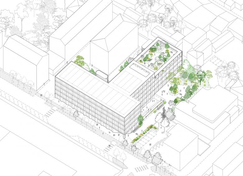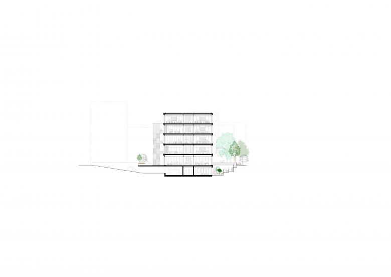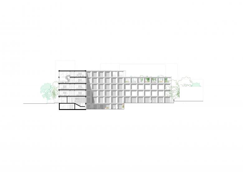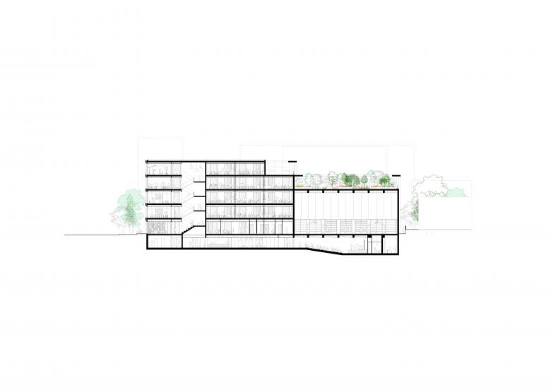 In terms of volumes, the building takes up the geometries of the pre-existing structure, simplified and reinterpreted in a contemporary key, accentuating transparencies and views in order to open the building towards the city and the surrounding landscape with variable heights that relate to the existing surrounding buildings.