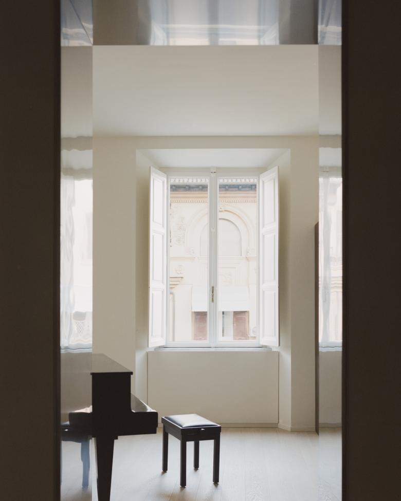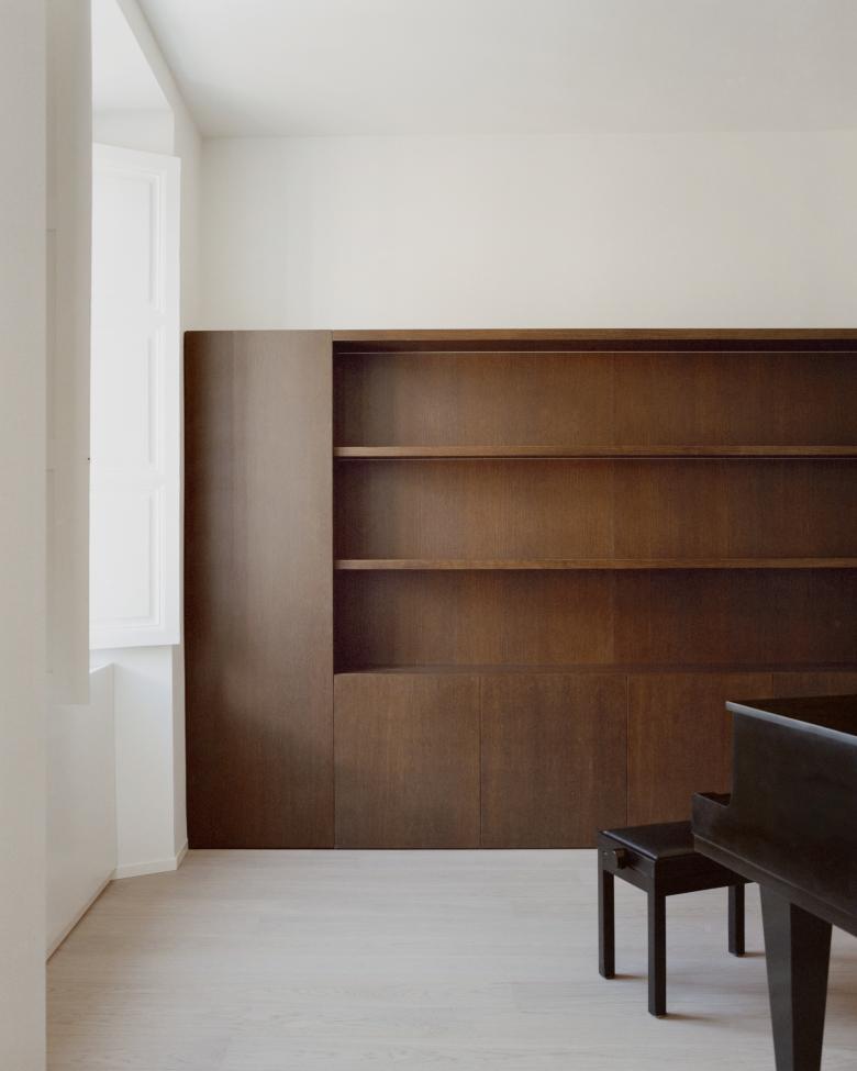The project came from the request of the client, a pianist and his family, to transform a space with a rigid configuration, made up of a sequence of rooms and a distribution corridor, into a contemporary and dynamic environment while maintaining a “classic” character that preserves the identity of the place.