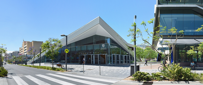 University of South Australia was founded in its current form in 1991 with the merger of the South Australian Institute of Technology and the South Australian College of Advanced Education. By transforming the on-campus student experience and enabling access for the surrounding community, Pridham Hall has become a civic landmark for both the university and the city.