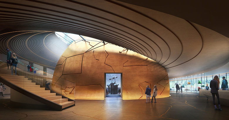 On its lowest level, below ground, the Planetarium dedicates a generous, bowl-shaped space for children to unfold.