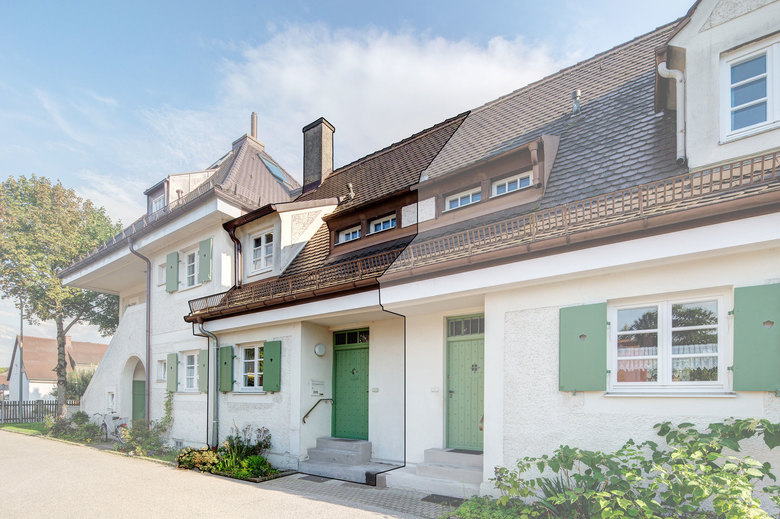 This listed property built in the 1900s - situated in the leafy suburb of Oberschleissheim, near Munich - needed a complete interior renovation. sophiegreen was approached by the client, a first-time buyer who wanted a simple but elegant interior design solution that might be suitable for the rental market as well as a family home. A new kitchen and bathroom was fitted, materials and colour scheme picked and sophiegreen oversaw all works in the renovation from first draft to project completion. The finished solution is light-filled and warm, with design ideals that showcase the property's charm and original features without over-shadowing them. Colour schemes pick up on motifs and tones in original paint (kitchen tiles echo the green of exterior doors and shutters - taking the outside inside) and 1900s wallpaper that was uncovered during the renovation, bringing this time-warp home back to the future.