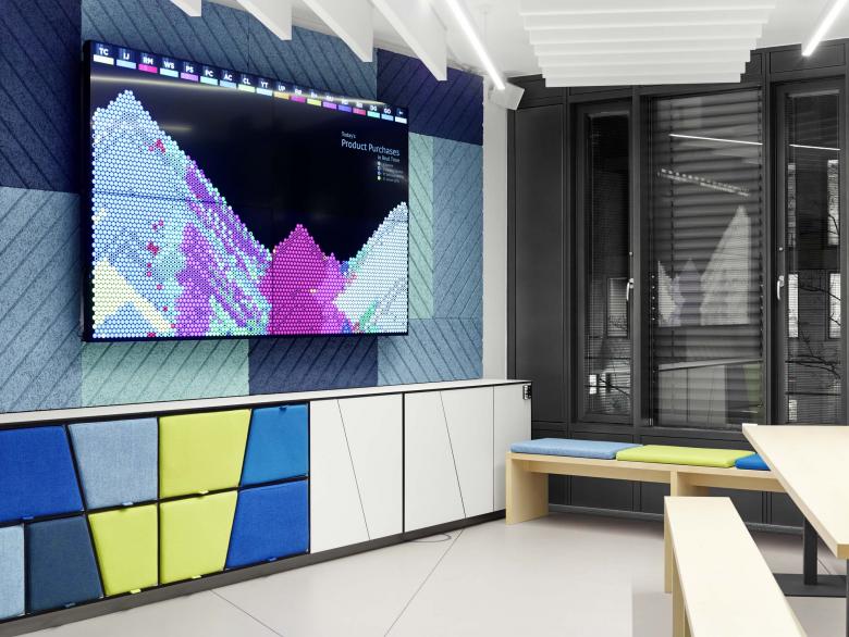 Complete renovation and redesign of the German HQ of Jetbrains, a cutting-edge, multinational software development company with more than 1000 employees and 1.5 million customers. Sophiegreen was comissioned to re-imagine the office around the concept of a 'natural futuristic mood' combining both humanistic and data elements, prioritise sustainable materials within the design - and communicate Jetbrains' identity through the space.