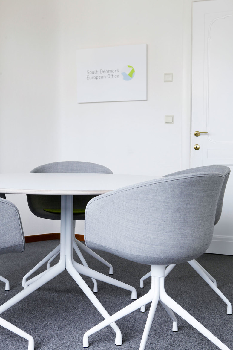 Specialized in "build communication", the office of Sophie Green Specialized in "build communication", the office of Sophie Green Interior Architecture has redesigned the once neutral office space of the South Denmark European Office, which now is a blend of open and closed offices, conference -, skype- and meeting rooms that convince through their creativity, dynamic and openness. The previously only two-dimensional existing corporate identity now also is communicated through the space - representing and creating a lasting impression.