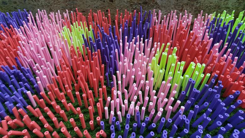 A work that invites you to stroll through a dream garden designed to surprise the viewer. An installation with an organic topography, where the plants are replaced by thousands of foam noodles.