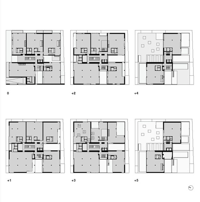 21 Büros und Ateliereinheiten in teilweise 2-geschossiger Ausführung mit Innenerschliessung, Grosszügige zentrale Treppenhausanordnung mit Belichtung über representative Atrium- Eingangshöfe. Grosszügige Terrassen und/oder Loggen bei allen Büroeinheiten, Tiefgarage, Clima Klasse A