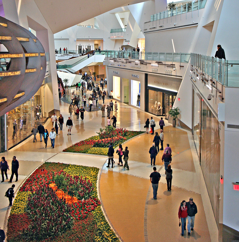 “Libeskind managed to make this 500,000-square-foot space feel like it’s not really a shopping mall at all. It’s open and flowing, with high ceilings, sloping walls and an abundance of desert sunlight filtered through crystal-shaped skylights.”—Alaistar Gordon, Wall Street Journal Magazine (June 2010)