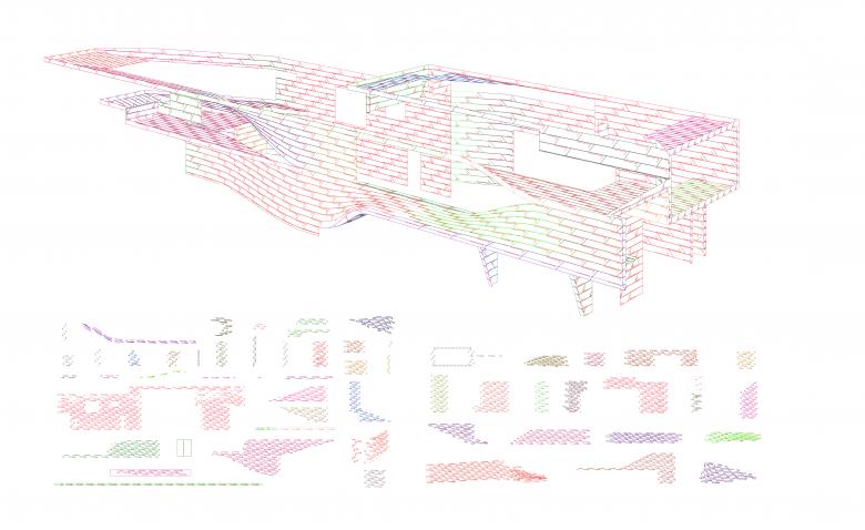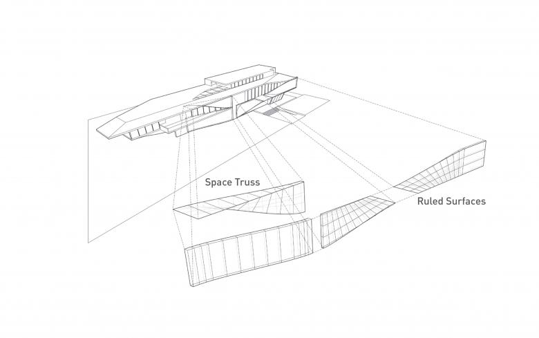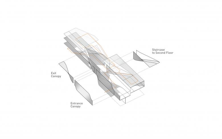 The design concept is based upon a series of linear elements that twist in section to combine “wall” and “floor” into a single sinuous gesture. Multiple folded walls encase the building’s program and generate an intense spatial richness that creates a series of interlinked public spaces that promote exploration and interaction. This process of turning and folding these walls generates experiential richness, connects interior and exterior, and turns the building into a unified form that creates a dynamic presence from the street.