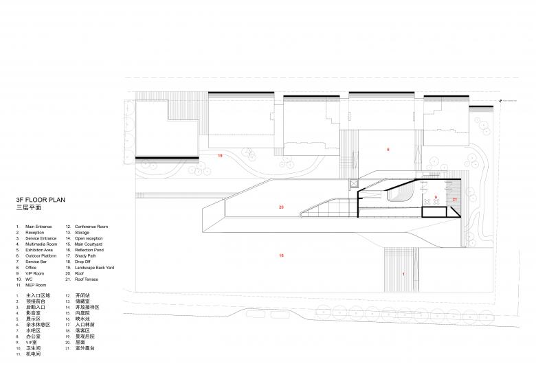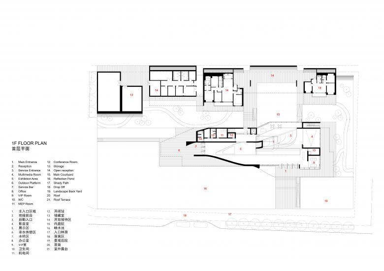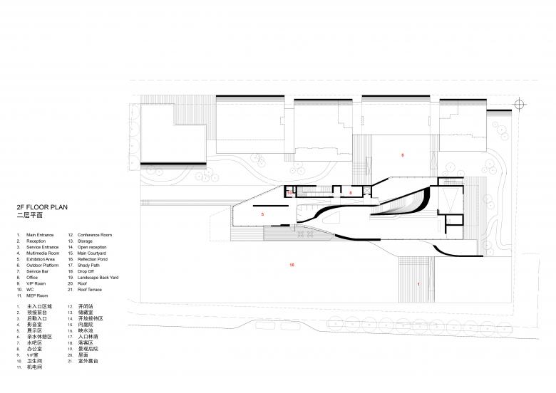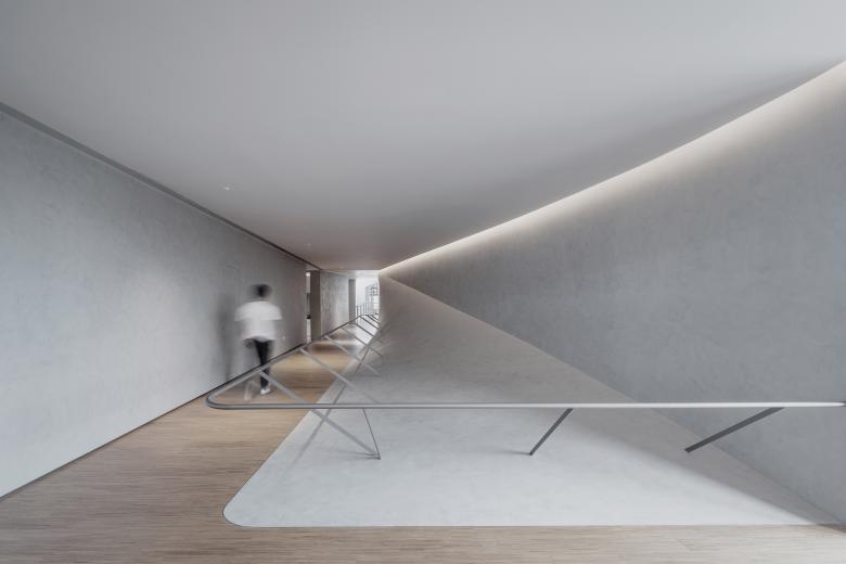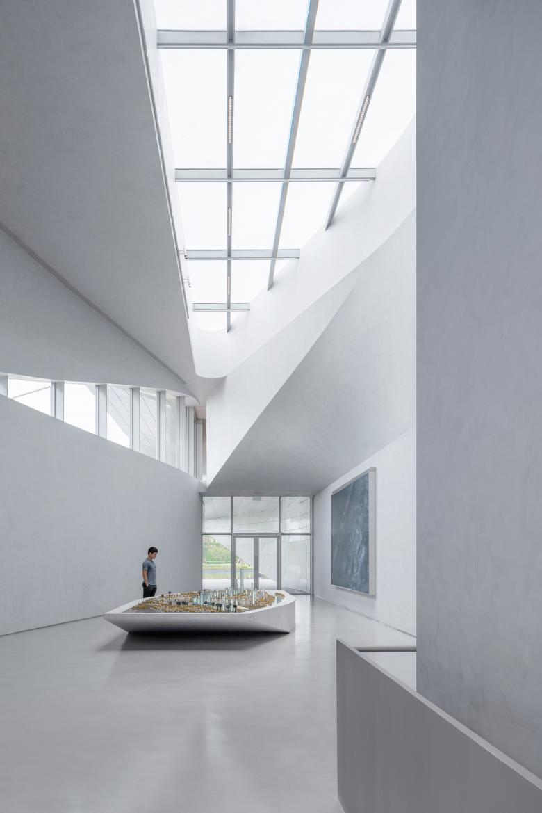 The experience of wandering between these spaces shares a spiritual connection with the experience of lingering in traditional eastern gardens. By applying a limited number of sinuous geometries and a clearly defined circulation strategy, the building can be understood as a contemplative sequence of connected spaces.