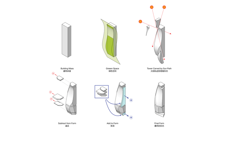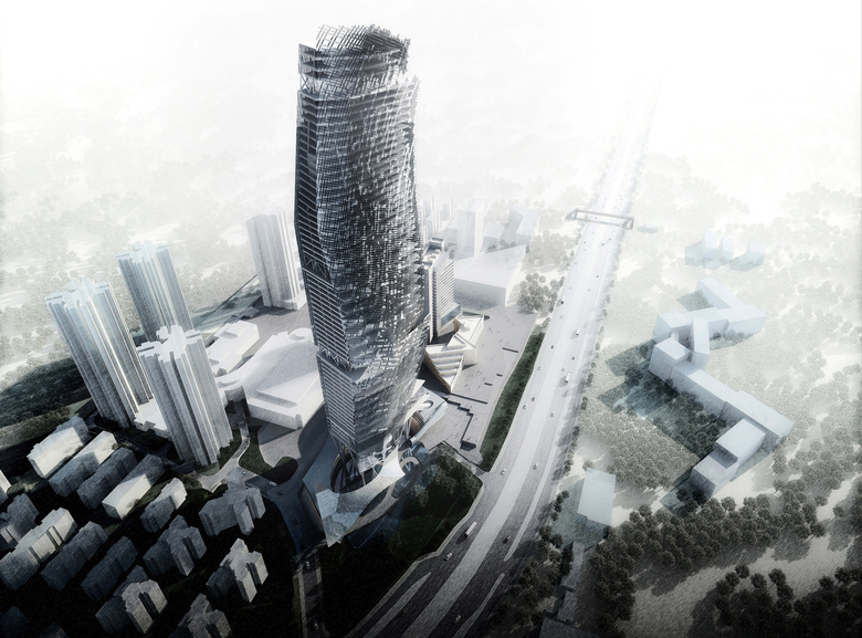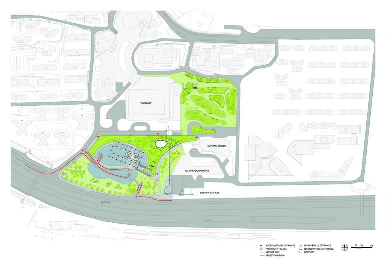 Studio Link-Arc’s proposal for the OCT Tower originated from detailed observation of the site. Defined by an existing office building and bordered by the nearby Hantang tower, an existing sculpture park, and a major vehicular thoroughfare, the design needed to reconcile many different conditions. Early in the design process, SLA decided to avoid typical urban development models which create cramped urban spaces and diminish public landscape, opting instead for a new approach. Studio Link-Arc’s scheme for the OCT Tower seamlessly integrates architecture, landscape, and urbanism, creating a contemporary public space for residents, visitors, and office workers.