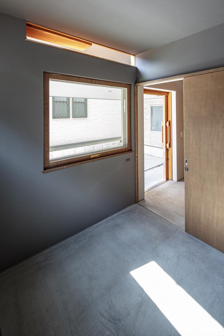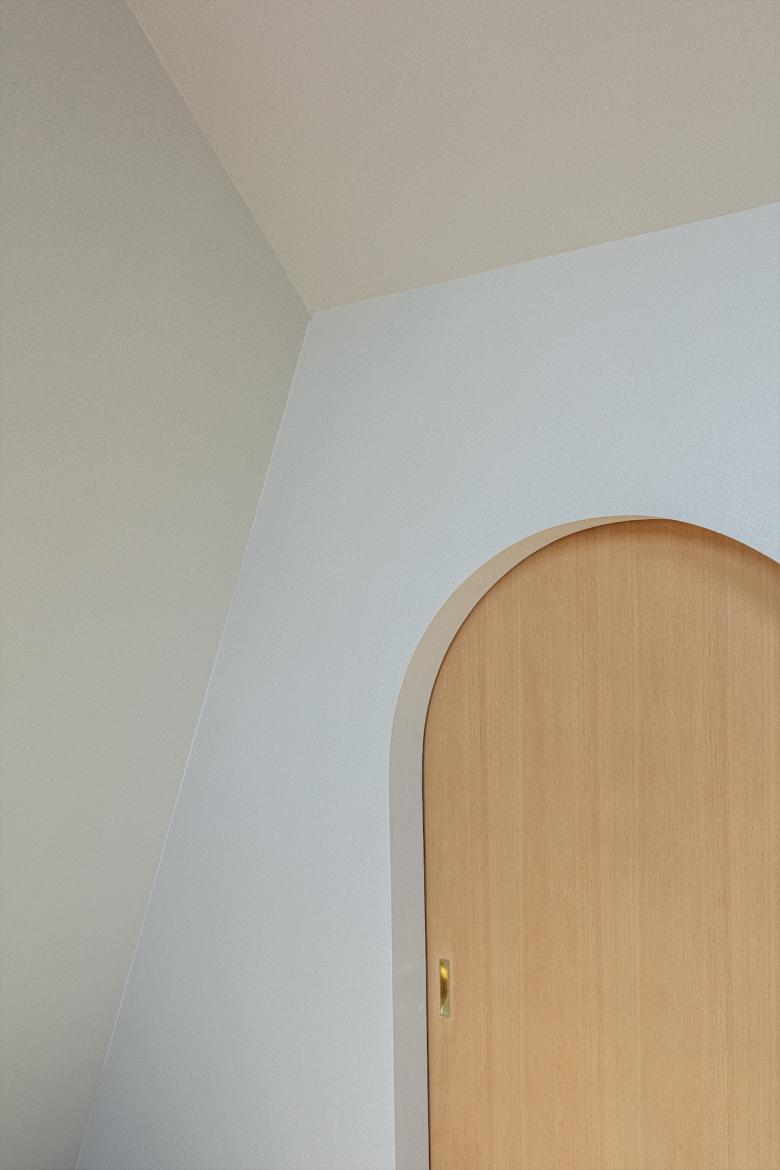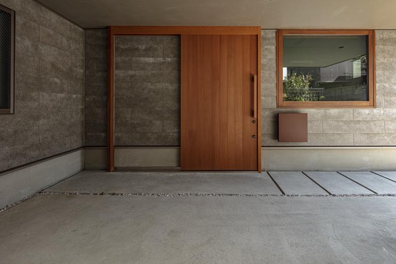 駐車場やバルコニー、ルーフバルコニーによりボリュームを切り欠くことで外の風景を引き込み、道路面ではそれぞれの室の雰囲気を少しずつにじみ出させることで、周辺環境との関係を結んでいる。
