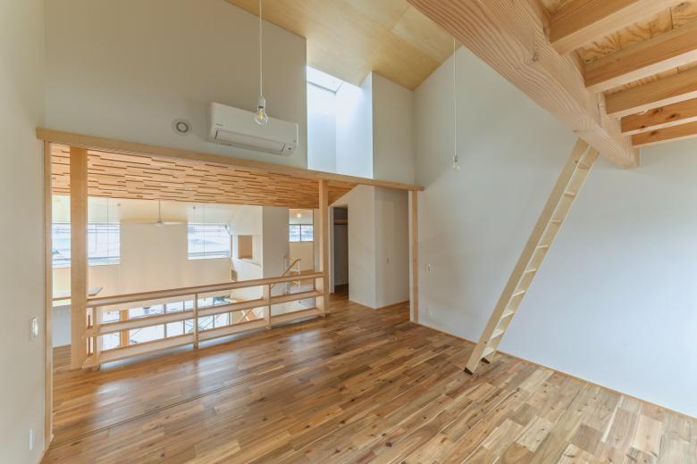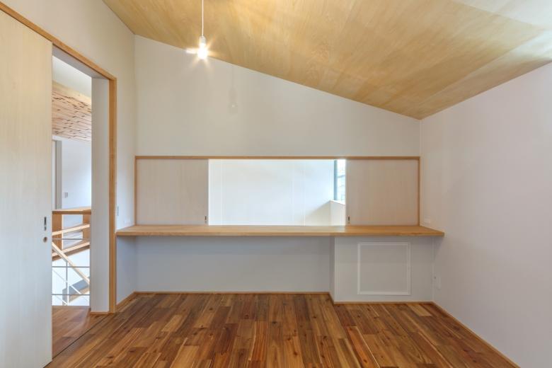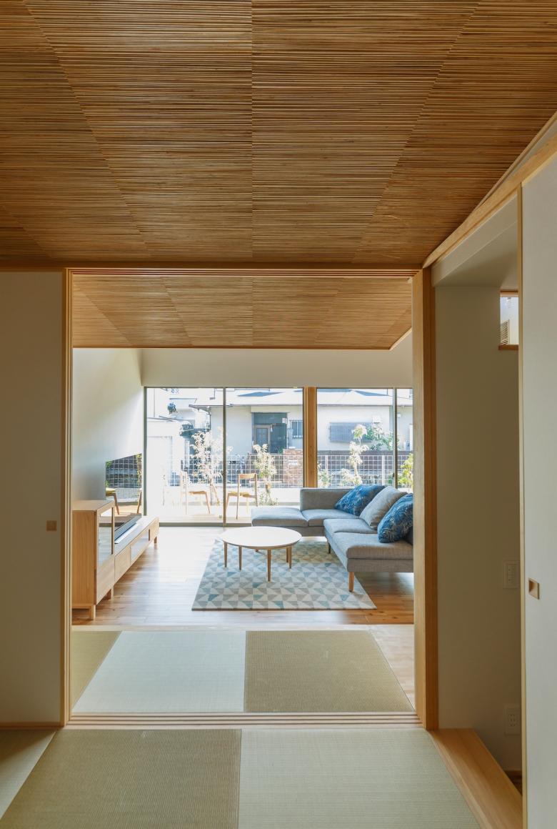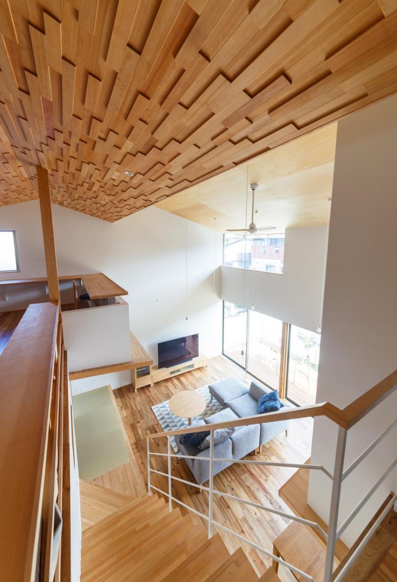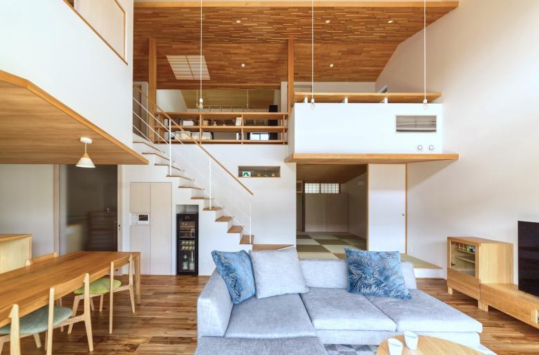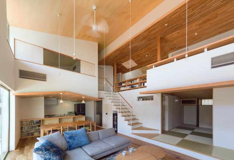 キッチンやスタディコーナー、和室や個室といったそれぞれの領域では様々な素材を使い分け、特徴づけるとともに、全体としてまとまりのある空間となるよう計画した。