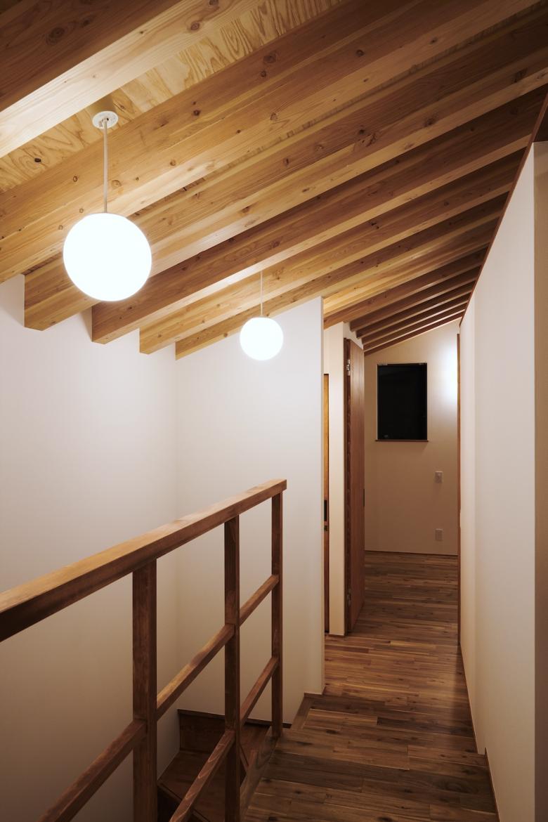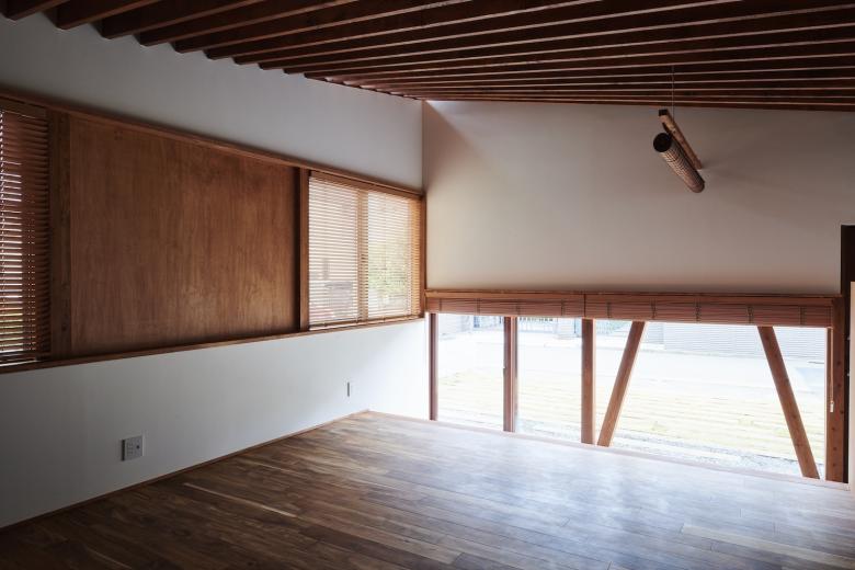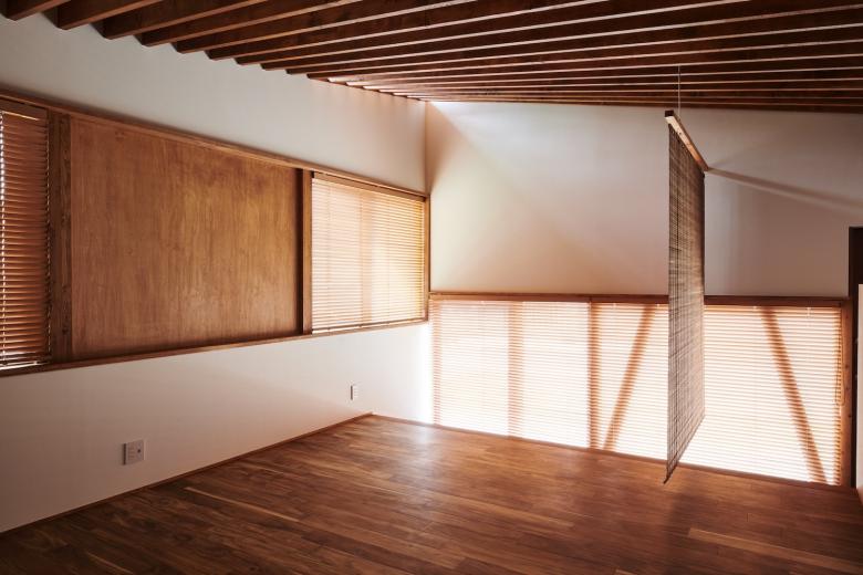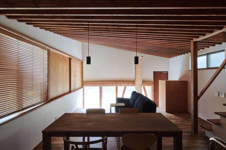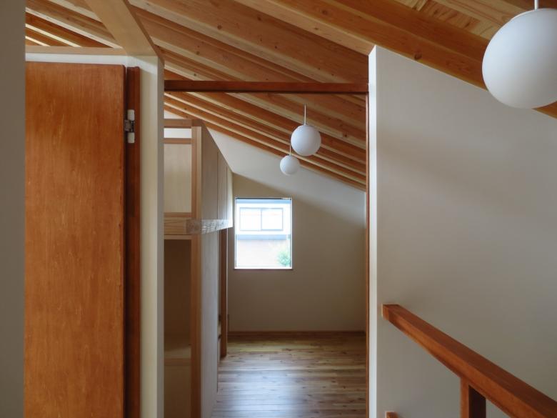 シンプルに必要諸室を配した長方形平面の二階建て、斜線規制にあわせた立面形状としつつ、1階と2階の間に木造HP曲面による構造床を挟み込んでいる。1階はその曲面あらわしの柔らかく落ち着いた空間とし、2階は各室の床に段差をつけて楽しい場所となることを意図した。