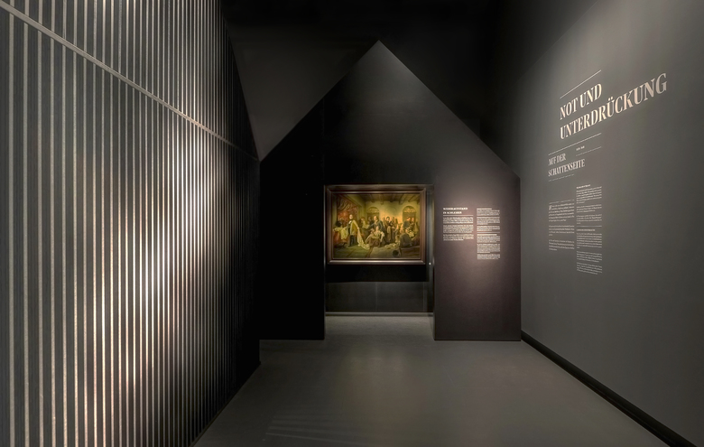 Die verschiedenen Ausstellungsräume erzählen vom aufstrebenden Unternehmertum und von dessen Kehrseite, der sich entwickelnden Klasse des Proletariats und ihren krassen sozialen Gegensätzen. Die Besucher erleben auf ihrem facettenreichen Rundgang Barrikadenkämpfe, sehen Revolutionen scheitern und deren Beteiligte ins Gefängnis oder Exil wandern.