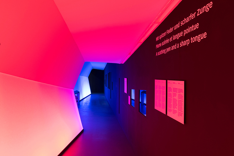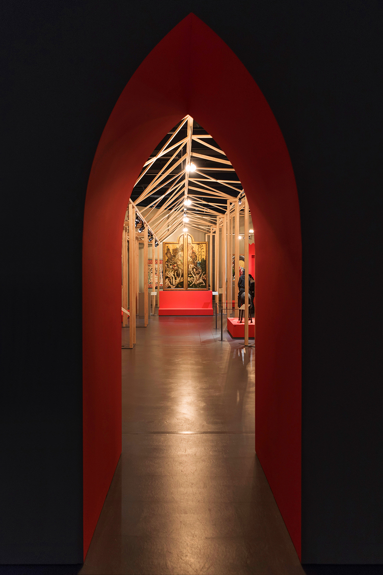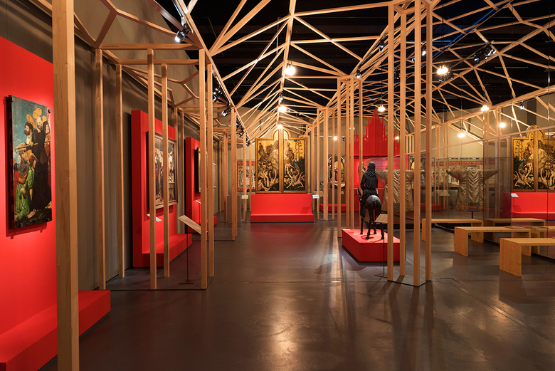 durch ihre karge Ausstattung und den Fokus auf Wort und Schrift geprägt ist. Diesen Kontrast nimmt die Ausstellungsgestaltung ganz bewusst auf und schafft so ein plakatives Bild der reformatorischen Absichten.