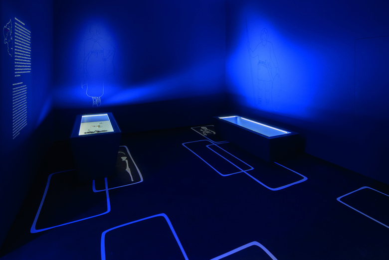Schlaglichtartig werden einzelne Funde einer bestimmten Epoche in einem Kubus präsentiert. Dessen Gestaltung orientiert sich metaphorisch an den Exponaten und ihrer Geschichte. Jeder Kubus ist individuell entwickelt und völlig anders gestaltet.