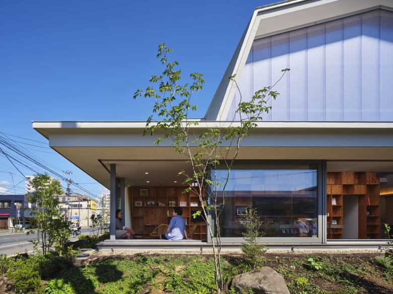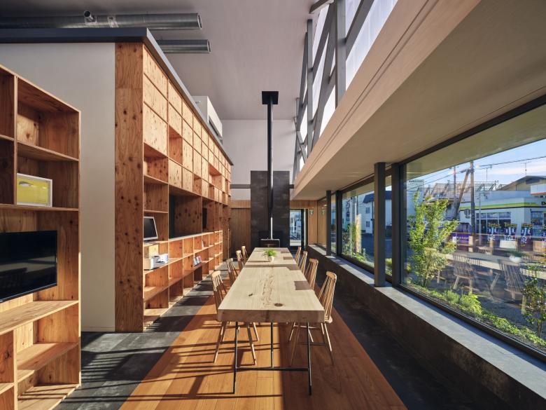 また交差点に面した建物の角には大きな開口を設け、その窓台に腰を掛けられるように設えました。