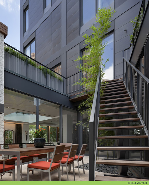 Developers of multi-unit condo towers had long admired the location with its 120' of frontage, but balked at the limitations in height and use placed on it by the city's preservationists. The audacity of suggesting that this parcel could become a single-family house is its genius; at almost 11,000 square-feet, it is large but consistent with luxury homes elsewhere in the city. The final plan was approved by the Landmarks Commission with the requirement that TCA meticulously restore the low corner portion of the historic structure, while the less historically interesting southern portion could become a new six-story tower, detailed, fenestrated, and finished to sit comfortably and elegantly in its context.