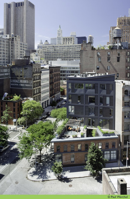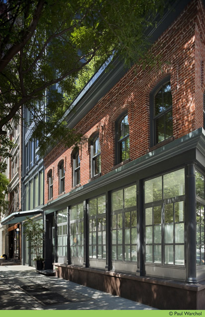 While Wayne Turett had been developing feasibility studies for this site, a charming and well-loved corner of West Broadway, the present owners asked him if he knew of any townhouses they might purchase - and a deal was made. "This building enabled us to build exactly what we were looking for - and then some," the client noted.