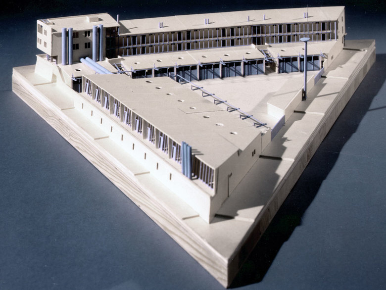 Den räumlich-geometrischen Konturen des städtebaulichen Entwurfs folgend entsteht auf einem Baufeldsegment das Gründerzentrum Prosper III als Gewerbehof für Existenzgründer und junge Handwerksbetriebe. Der dreieckige Geschäftskomplex umschließt mit Werkstätten, Produktions- und Versorgungseinrichtungen einen Betriebshof. Im geschwungenen Platzrandgebäude bilden Läden, Dienstleistungen, Büros, sowie eine Cafeteria den Schwerpunkt des neuen Quartiers.