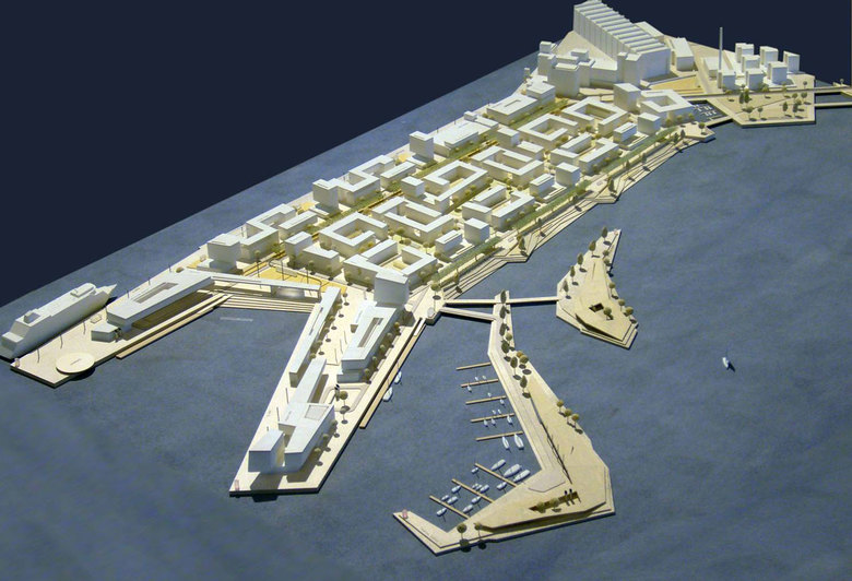Masterplan für die Umstrukturierung eines 32 ha großen Hafenareals zu einem urbanen Stadtquartier mit Kreuzfahrtterminal, Seacenter und Marina. Typologische Vertiefung von Gebäuden und Freiräumen